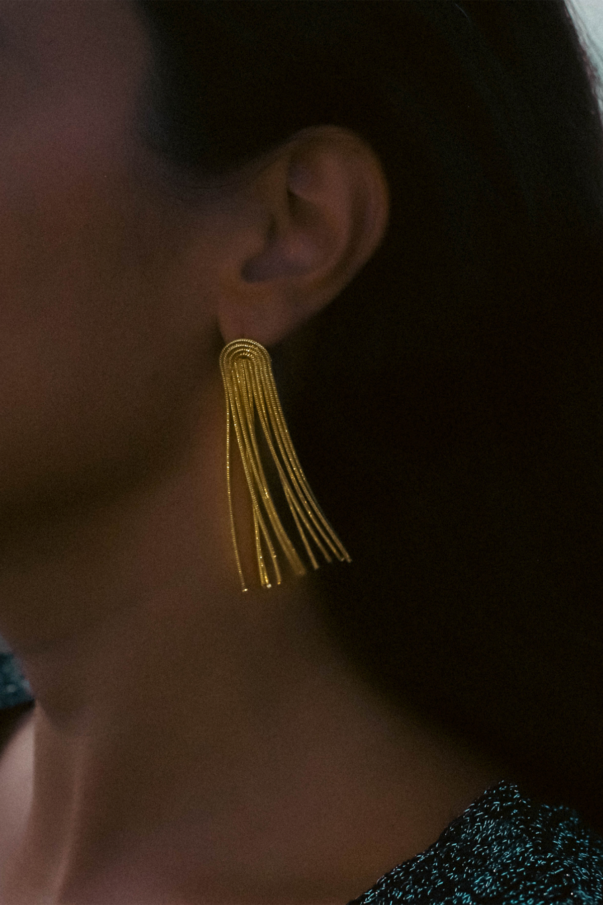 Each delicate strand catches the light with every step, creating a mesmerizing play of shimmer that enhances your natural poise. Designed to elongate the neck and frame the face with subtle drama, Maren is the perfect blend of modern edge and classic refinement.