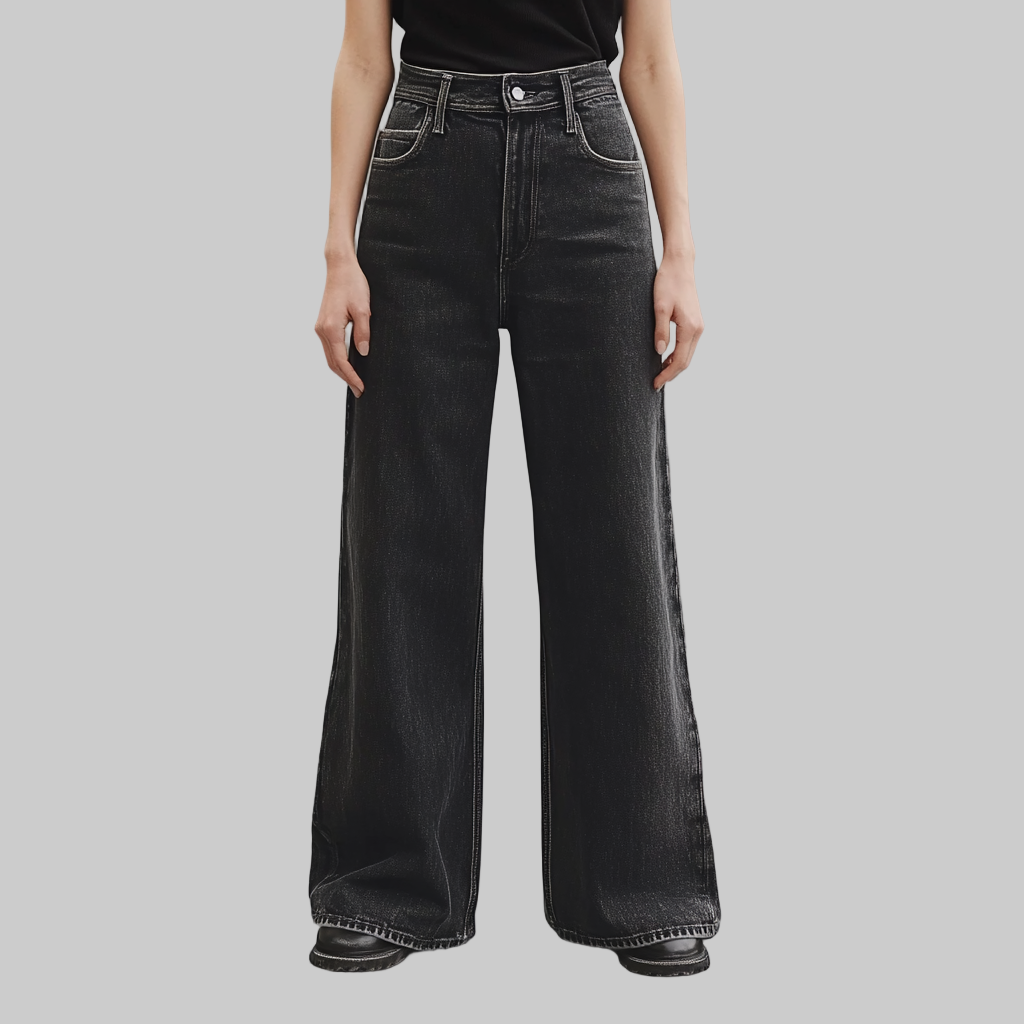 Bold, sleek, and versatile — Rosalind Black Wide-Leg Jeans are the ultimate foundation for a modern wardrobe. Designed with a fitted shape through the thigh and a dramatic wide-leg flare, they create a silhouette that’s both flattering and fashion-forward.