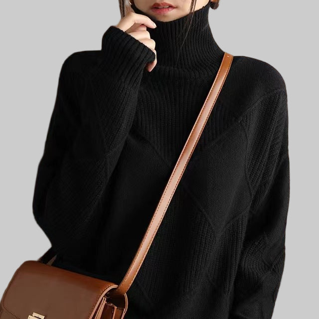 Pair Amora with tailored trousers, pleated skirts, or straight-leg jeans. Layer under a blazer or over a midi slip. Accessorize with minimal jewellery and block-heel boots or sleek flats to let the knit remain the hero.